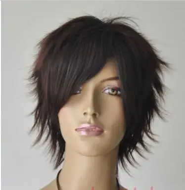 Natural looking brown straight spiky men's unsix synthetic hair full wig.